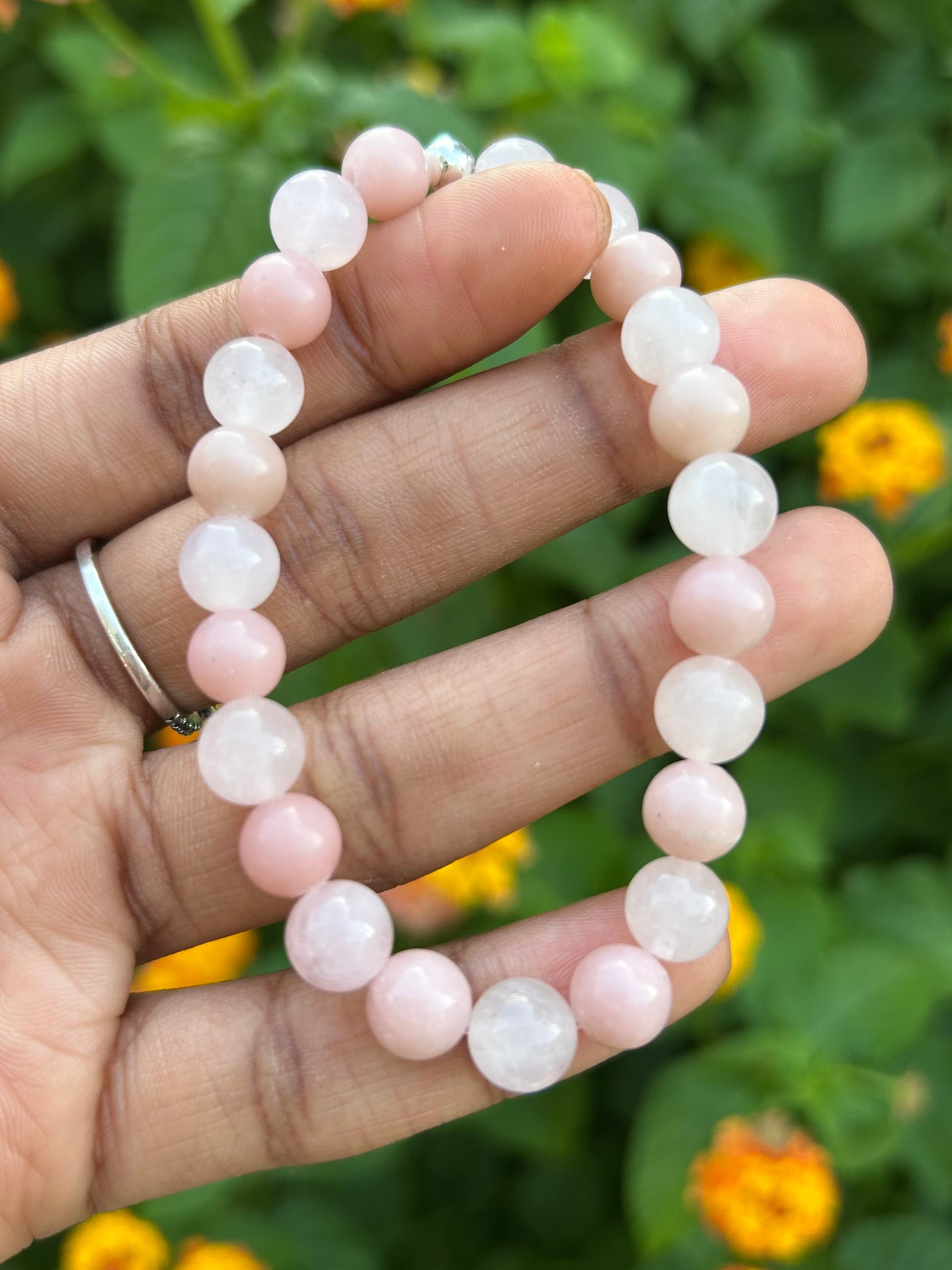 Healing Properties: These bracelets are handmade with rose quartz and pink opal, a soft, heart-centered duo that nurtures emotional healing, love, and peace. Rose quartz opens the heart to unconditional love, self-compassion, and forgiveness, while pink opal gently soothes anxiety, heals past emotional wounds, and encourages emotional vulnerability. Together, they create a calming, loving energy—perfect for those on a journey of self-healing, inner peace, and deeper connection with others.